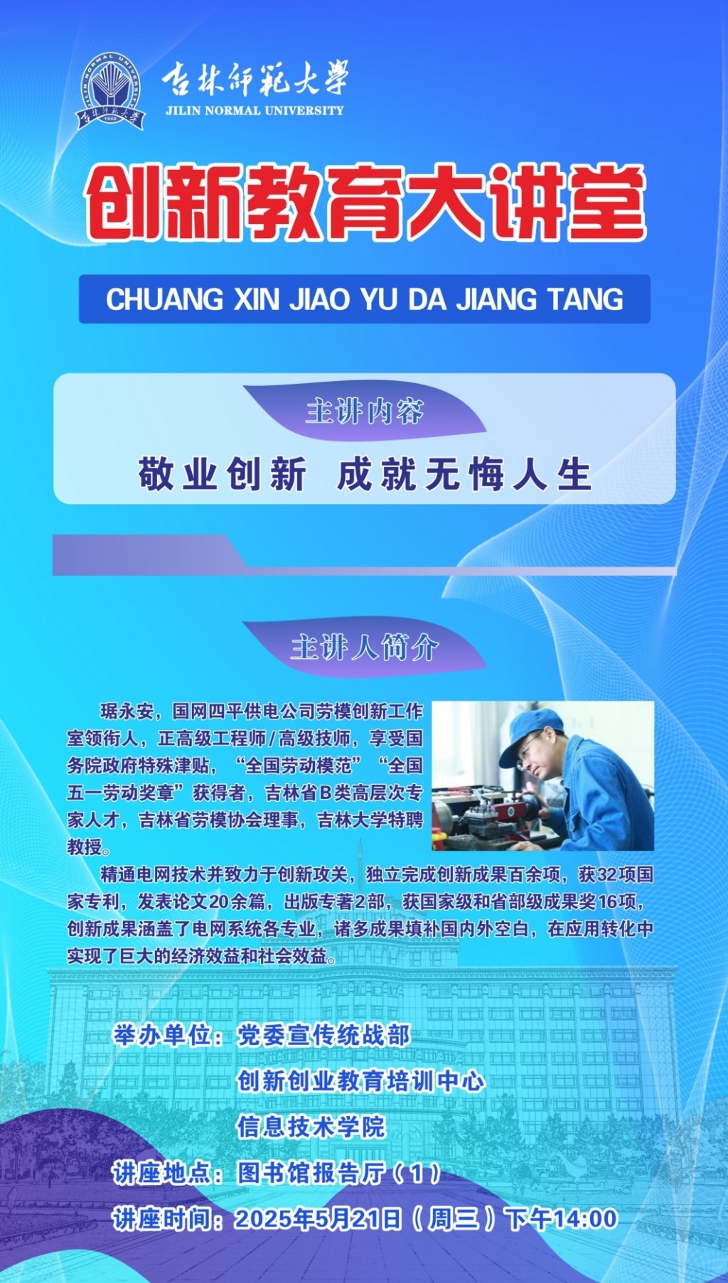 【活动预告】创新教育大讲堂-敬业创新,成就无悔人生