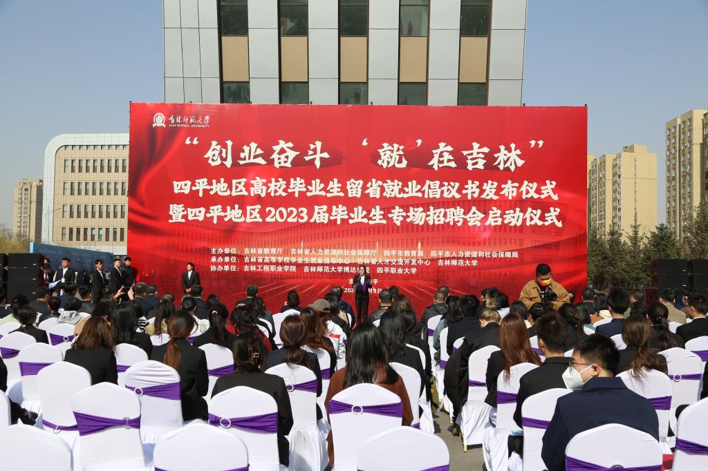 4月9日,四平地区高校毕业生留省就业倡议书发布仪式暨“创业奋斗‘就’在吉林”四平地区2023届毕业生专场招聘会在太阳成官网创新创业中心举行,旨在营造毕业生留吉就业、扎根吉林的浓厚氛围,进一步增进用人单位与毕业生双向了解,打造毕业生就业“直通车”。