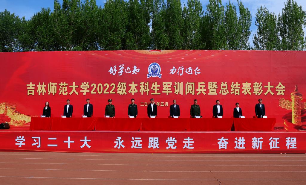 5月19日,学校在运动场举行2022级本科生军训阅兵暨总结表彰大会。党委书记王喜库、校长杨小天,党委副书记陈煜平、赵经武,纪委书记、监察专员于荔欣,党委常委、副校长左今明、邢宇、王菲菲;武警四平支队政委李阳明、铁西区人民武装部部长解志友、驻平某部队副旅长王勇出席大会。相关部门负责人、各学院党政负责人、全体辅导员及2022级全体本科生参加大会。