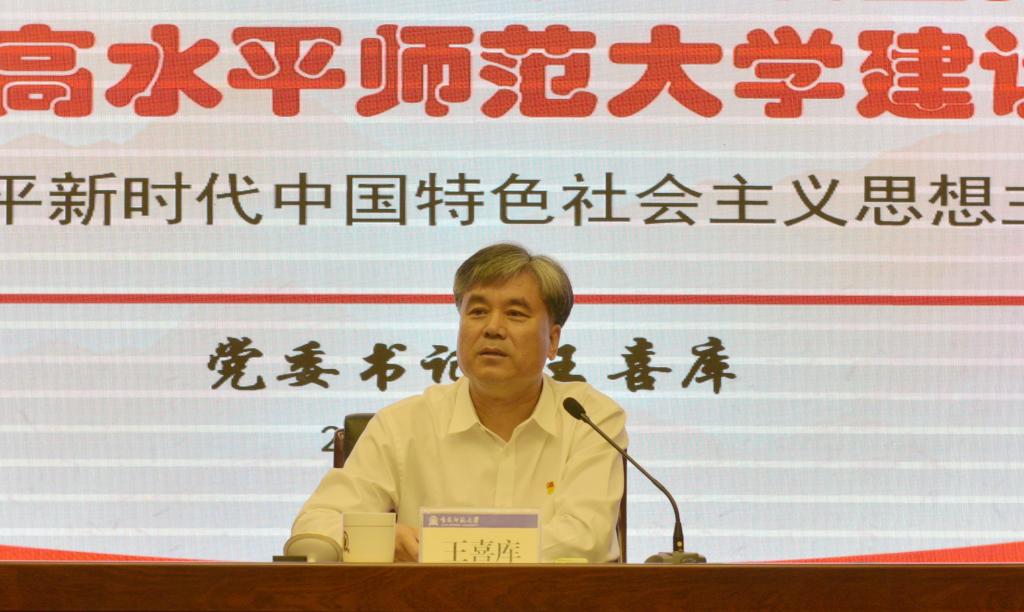 王喜库指出,必须坚持人民至上,抓牢高水平师范大学建设的出发点。要深刻领会“必须坚持人民至上”的价值追求,始终树牢“围绕师生员工、关照师生员工、服务师生员工”的理念,切实做到铭刻于心、着眼于事,见诸于行,凝聚起学校事业高质量发展的主体共识、价值共识。必须坚持自信自立,抓牢高水平师范大学建设的立足点。要深刻领会“必须坚持自信自立”的精神特质,持续强化理论武装、完善规章制度、加强文化建设,一以贯之做好实施科教兴国战略、人才强国战略、创新驱动发展战略的先锋队和主力军。