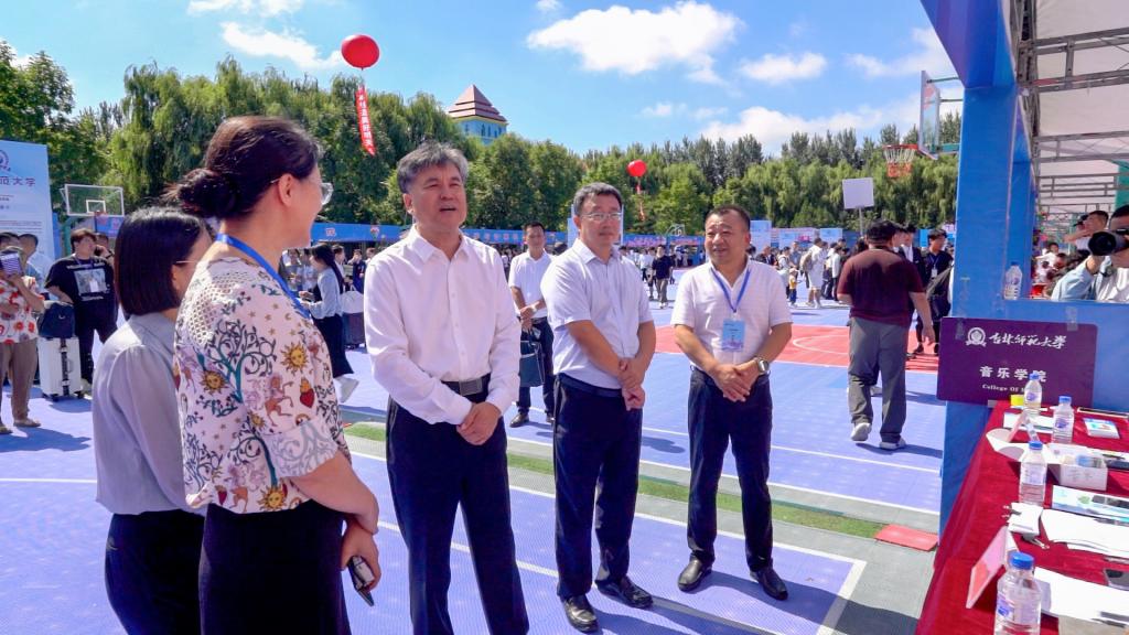 党委书记王喜库、校长杨小天,党委副书记赵经武,纪委书记、监察专员于荔欣,党委常委、副校长左今明、吴振利、邢宇、王菲菲亲临现场,慰问广大迎新工作人员,并与新生及家长亲切交流。