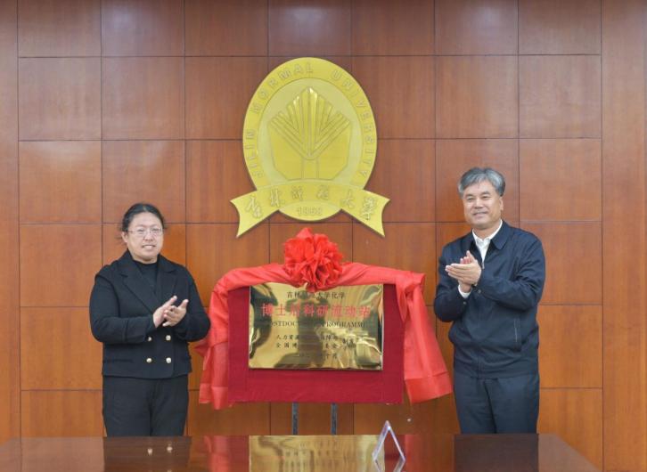王喜库和仲笑林为太阳成官网化学学科博士后科研流动站揭牌