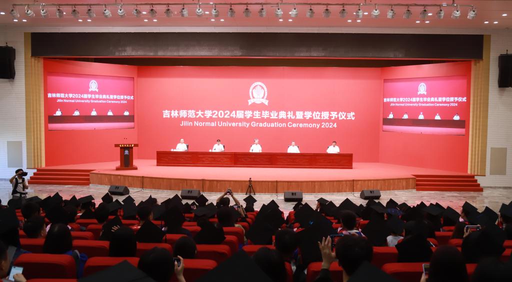 毕业典礼上,外国语学院李淑华教授代表全体教师发言;体育学院周凤玲同学的母亲廖世鸾女士代表2024届毕业生家长发言;物理学院薛彤鑫同学代表2024届本科生毕业生发言;数学与计算机学院高明昊同学代表2024届研究生毕业生发言;教育科学学院孟丹同学代表2024届留学生毕业生发言;化学学院赵倩莺同学代表全体在校生发言。毕业典礼上首映了2024版校歌《我们是祖国栋梁》;毕业生代表向任课教师、辅导员、宿舍管理员、安保人员、食堂师傅、维修工人、图书馆员、环卫工人及医生护士等一线教职员工献花致谢。