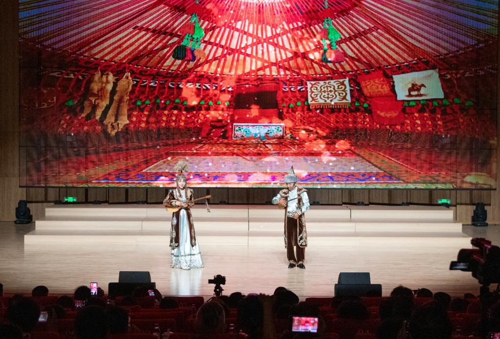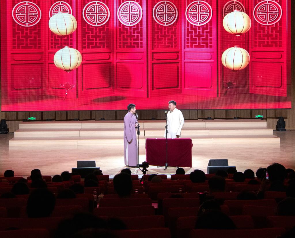 活动现场,牡丹奖获得者帕丽达和叶尔泰表演的哈萨克族冬不拉弹唱《幸福时光》拉开了演出的序幕。梁洪昊、杨凯表演的相声《都挺好》以默契的配合、幽默的语言将整场演出推向高潮。中国曲艺牡丹奖文学奖、表演奖、节目奖获得者、评话表演艺术家吴新伯创作表演的苏州评话《话说评话》,以生动有趣的表演展示了评话“说”“噱”“演”的绝技,台下观众笑声不断。相声、二人转、独角戏、快板书、歌曲等各具特色的曲艺表演形式,带给现场观众一场别开生面的文化盛宴。
