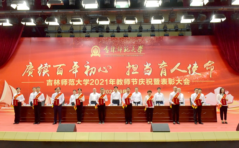 9月10日,学校在音乐厅隆重召开2021年教师节庆祝暨表彰大会。党委书记王喜库、校长杨小天,党委副书记祖国华、刘万民,党委常委、纪委书记、监察专员侯奎岩,党委常委、副校长李海波、曲殿彬、张作岭,副校长赵经武出席会议。全校副处级以上干部、各级人大代表、政协委员、民主党派负责人,离退休干部代表,受表彰教师代表,学生代表参加会议。