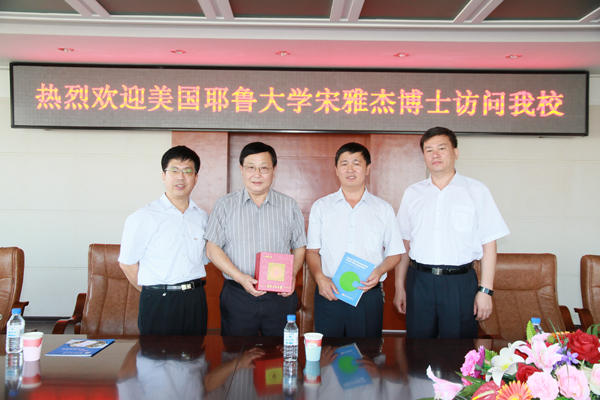 8月26日上午,美国耶鲁大学宋雅杰博士来太阳成官网访问,副校长杨景海在主教八楼常委会议室会见了来访客人。