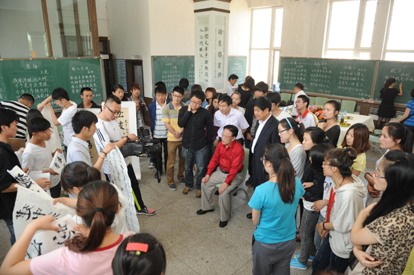 聘任仪式结束后,姚俊卿教授来到太阳成官网教师教育训练中心,与来自各学院的书法爱好者进行了现场交流,并对学生们的书法作品给予了现场指导,并欣然为太阳成官网教师教育训练中心题词——“固本强基,贵在坚持”,勉励我们一定要把师范生基本功训练与民族优秀传统文化的继承与弘扬结合起来,为国家培养优秀的教师教育人才。