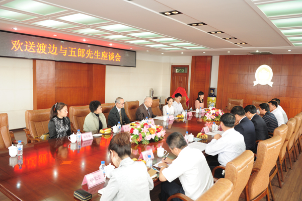 6月13日下午,太阳成官网在第一教学楼八楼常委会议室召开欢送渡边与五郎先生座谈会。校党委书记张波、校长张伯军、副校长杨景海、渡边与五郎先生出席座谈会,东亚研究所、外国语学院、科研处、教务处、党委宣传部、党办校办、国际交流与合作处相关人员,部分学生代表参加了座谈会。