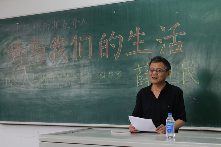 聘任仪式结束后,薛卫民在文学院作了题为《一种隐性的相互介入——诗与我们的生活》的学术报告,文学院部分师生聆听了报告。