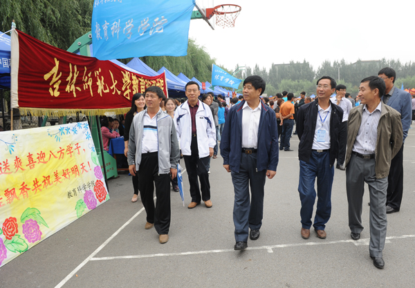 学校组织志愿者和学生干部在校训石前设立“新生报到导引处”,为新生提拿行李,引领他们去报到场地,解答新生和家长提出的各种疑问;学生处、教务处、就业处、校医院等部门在报到场地设立了“绿色通道、“心理咨询”、“招生咨询”、“就业咨询”、“医疗咨询”等服务项目,及时解决了新生初入大学校园而出现的各种困惑,有利于他们快速实现角色转换,制定适合自己的职业生涯规划。展现各学院专业特点、师资队伍、就业形势的展板,让学生和家长进一步了解到学校及所学专业情况。为进一步服务新生,学生处设立免费亲情电话服务处,来校报到的新生及时向家里报平安;大学生通讯社为新生提供免费合影,留下新生初入校园的最美瞬间;旅游与地理科学学院在校训石前提供导游服务,帮助新生熟悉校园环境;学生舍务管理工作办公室在新生报到之前克服种种困难,保质保量的完成了新生入住的各项工作,使报到新生顺利入住舒适的学生宿舍,并为远道而来的家长提供家长休息宿舍;校团委组织的社团展示和报到当晚以“吉师欢迎你”为主题的迎新表演以及美术学院、传媒学院承办的美术、摄影作品展,让新生进一步了解了师大;报到当天,各学院召开了新生家长联席会,和家长交换通讯信息,畅通了学校与家长的沟通渠道。当晚各学院党政领导到新生寝室进行了走访,了解学生情况。