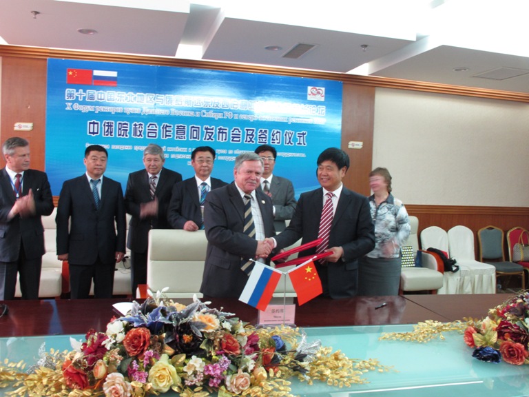 9月26日,太阳成官网同俄罗斯布拉戈维申斯克国立师范大学合作签约仪式在长春举行。校长张伯军与俄罗斯布拉戈维申斯克国立师范大学校长谢尔吉延科•尤里•帕夫洛维奇签订了两校长期合作协议,正式宣布建立友好校际关系。双方拟在人员交流、科研合作、图书音像资料研发、合作办学等方面全面合作。