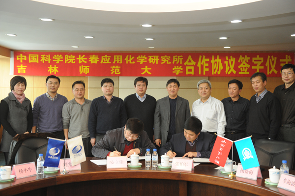 中国科学院长春应用化学研究所所长安立佳、副所长周光远及相关处室领导,澳门太阳成集团校长张伯军、副校长杨景海及相关处室和院所领导参加了签字仪式。