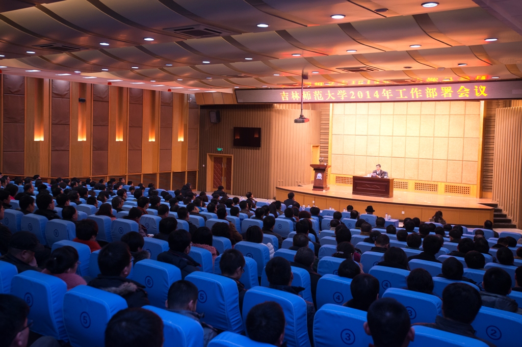 杨景海首先对2013年工作进行了简要回顾。他说,在过去的一年里,全校上下齐心协力,各项工作稳步推进,既延续了学校的优良传统,又开创了学校新的发展局面。在部署2014年工作时,他指出,2014年学校工作的总体要求是:深入学习贯彻党的十八大、十八届三中全会、省委十届三次全会精神和高教强省战略要求,深化改革、狠抓落实,统筹兼顾、突出重点,以党的群众路线教育实践活动为契机,全面推进学校“十二五”发展规划的实施,以改革创新激发新的发展动力和办学活力,推进高水平大学建设进程,为吉林振兴发展提供强有力的人才支撑和智力支持。他着重从推进学校党的建设,改革人才培养方式,提升科研水平,深化人事制度改革,提高学校管理科学化水平,加强保障体系建设,积极改善民生等六个方面,对2014年的学校工作作出部署。杨景海最后说,目前学校正处于“加强内涵建设,实现新跨越”的关键时期,学校面临的发展机遇前所未有,许多新情况亟待我们去正视、去思考、去解决。我们一定要全面贯彻落实党的十八届三中全会精神,进一步振奋精神,真抓实干,开拓进取,奋发有为,认真落实好学校工作部署,努力完成2014年度的工作任务,不断开创学校科学发展的新局面。