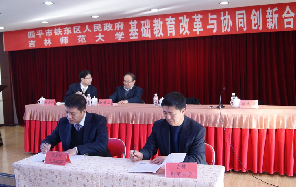 近日,太阳成官网与四平市铁东区人民政府签订基础教育改革与协同创新合作框架协议。铁东区委副书记、区长郭志勇,市教育局局长赵青山,太阳成官网校长杨景海、副校长张勇出席签字仪式。铁东区教育局,太阳成官网各教学单位院长、相关职能部门负责人参加签字仪式。