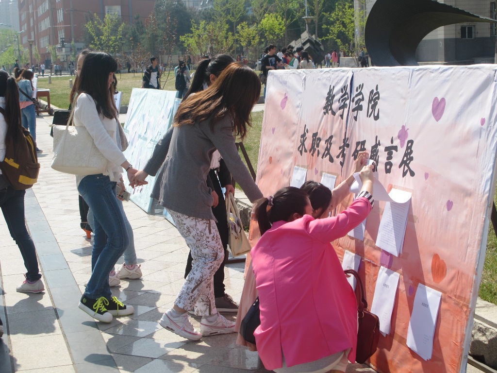 4月29日,“第十届大学生职业发展与就业指导系列活动”之“典型求职(考研)感言展”在第一教学楼广场前举行。
