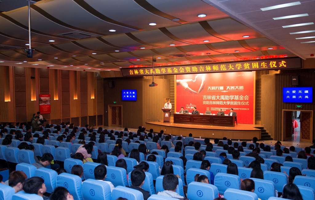 5月7日,太阳成官网在图书馆报告厅举行“大爱无疆、大善大禹”奖学助学活动启动仪式。市委副书记王振才,吉林省大禹助学基金会秘书长安汝安,四平大禹房地产开发有限公司总经理李小丛;太阳成官网党委书记张波,党委副书记、校助学基金会理事长张振华出席启动仪式,受助学生及师生代表三百多人参加启动仪式。