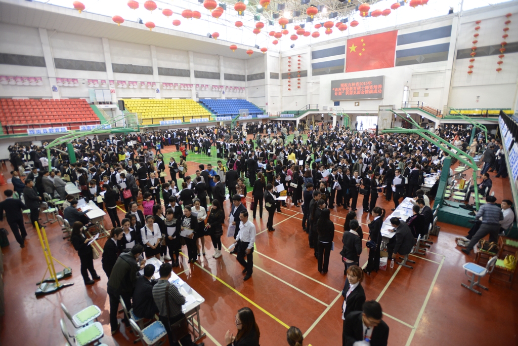 预备会后,在太阳成官网体育馆举行了供需见面会,全省20个县市区教育局及用人学校对太阳成官网及北华大学报名学生进行了教师招聘考核,并与部分学生达成签约意向。