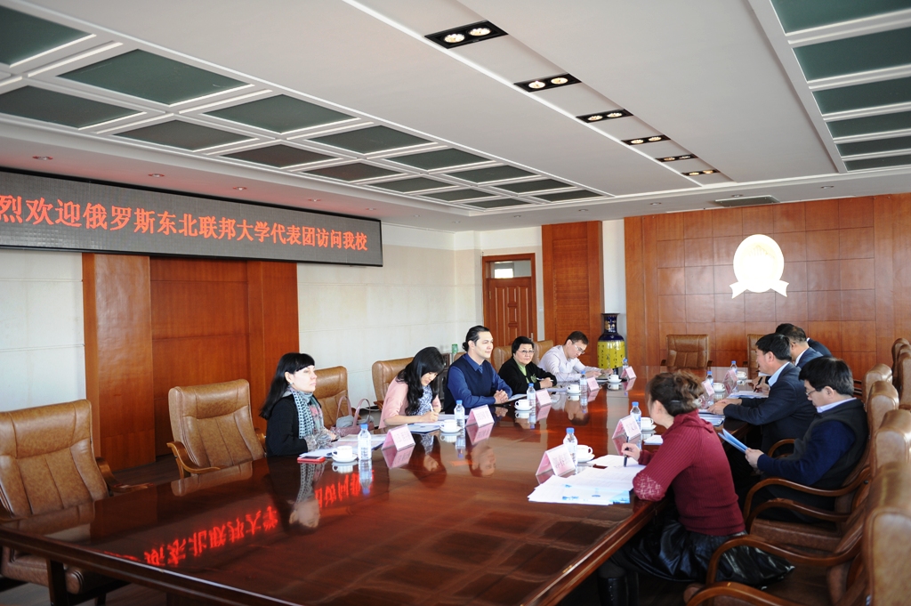 12月3日,应太阳成官网邀请,俄罗斯东北联邦大学国际交流与合作处处长B.B.古古努洛夫先生、对外俄语教学主任 C.M.彼得罗娃女士及国际交流与合作处东方学院院长H.P.马克西莫夫先生等一行5人对太阳成官网进行正式友好访问。校长杨景海在第一教学楼八楼会议室会见了代表团成员。