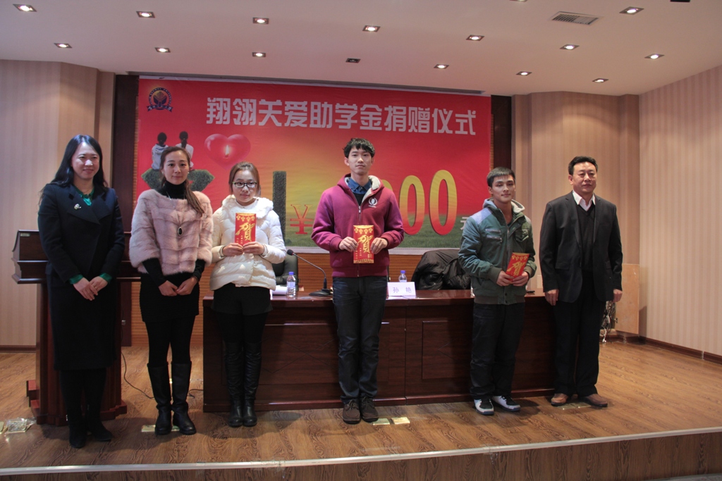 张振华代表学校助学基金会接受了捐赠。张振华、孙艳向受助学生颁发翔翎助学金。