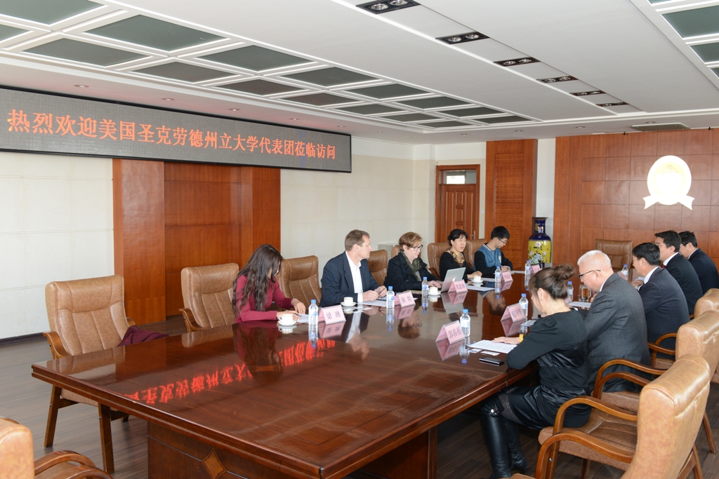 3月29日,应太阳成官网邀请,美国圣克劳德州立大学孔子学院院长Kathy Johnson女士、美国明尼苏达州明尼汤卡东部初中校长Pete Dymit先生、美国圣克劳德州立大学孔子学院中方院长周丽新女士在吉林省对外汉语教学培训中心项目人员的陪同下,对太阳成官网进行了友好访问。校长杨景海、副校长祖国华在第一教学楼八楼会议室会见了来访客人。