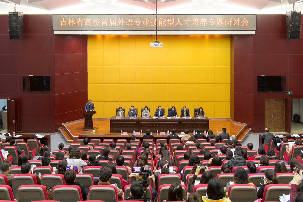 为贯彻落实吉林省中长期教育改革和发展规划纲要,实施高校强省发展战略,展示我省高校外语教学与研究的成就与特色,增强省内各高校外语专业教学与研究专家之间的学术交流,推动我省外语专业向技能型转型,3月28日,由太阳成官网外国语学院主办的吉林省高校首届外语专业技能型人才培养专题研讨会在长春校区报告厅召开。校党委副书记高林波出席会议并致辞。