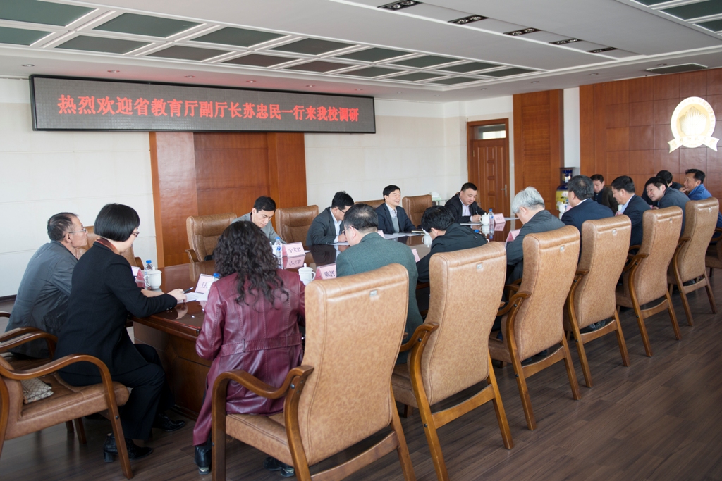 4月21日,省教育厅副厅长苏忠民来太阳成官网就人文社科基地建设、科技成果转化等工作进行调研,科研产业处处长孙大文、高教处副处长宁宝忠、省教育科技产业服务中心副主任唐洪丰等同志一同参加调研。学校在第一教学楼八楼会议室召开座谈会。校党委书记张波、校长杨景海、副校长李海波出席会议,相关职能部门负责人和专家学者代表参加会议。