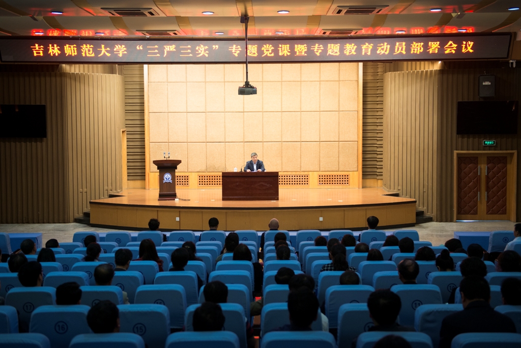 为贯彻落实全面从严治党要求,巩固和拓展党的群众路线教育实践活动成果,按照省委的统一部署,5月20日,学校在图书馆报告厅召开“三严三实”专题党课暨专题教育动员部署会议。校党委书记张波,校长杨景海,副校长祖国华、张勇,校党委副书记刘万民出席会议。全校副处级(含)以上干部参加会议。