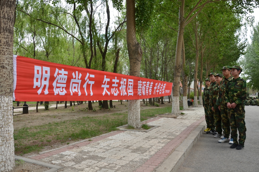 营造氛围,强化意识。学校努力营造浓厚的军营氛围,在军训场地悬挂标语、条幅,使学生具有身处军队、身为军人的感觉;参训学生统一着装,统一按团、营、连编制组建成学生军训团,并以营、连为单位开展各项活动,努力按军人的标准约束学生,使学生一日生活军事化。