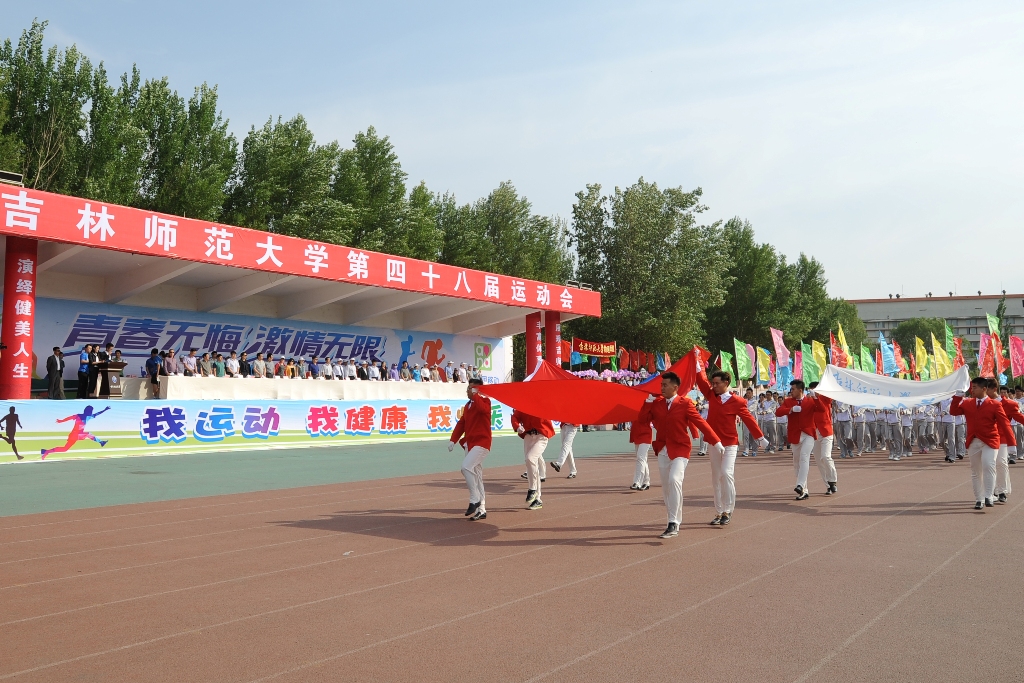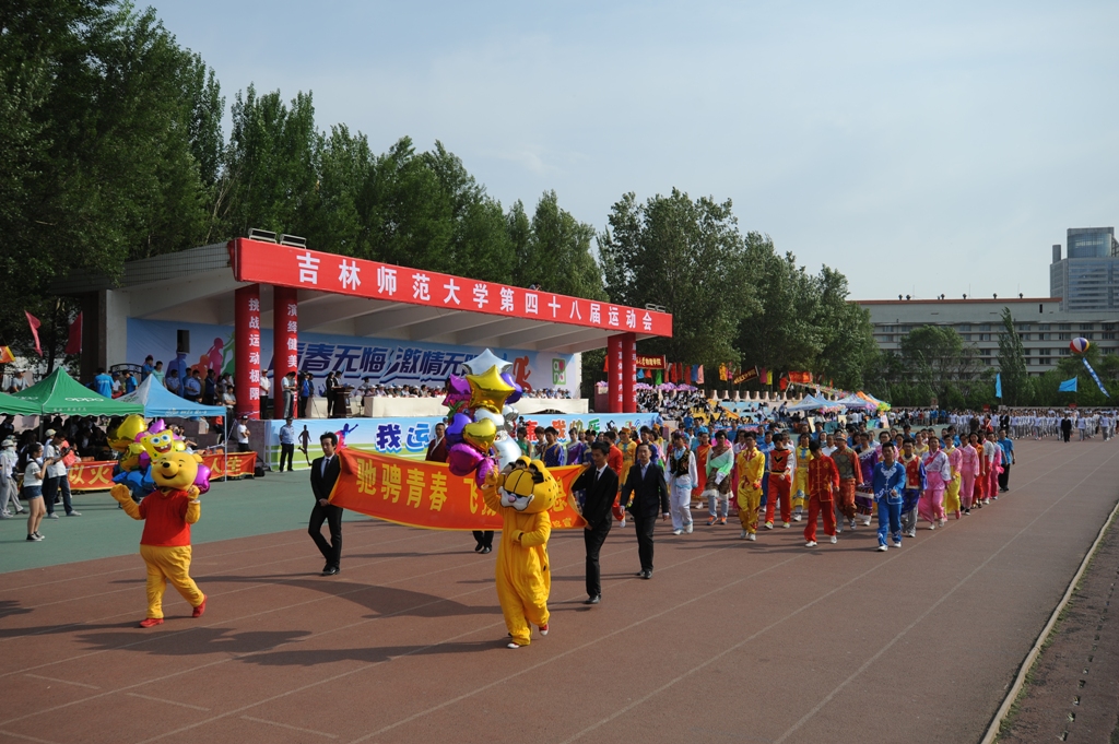 五月的师大校园芳菲争艳,绿意盎然。5月28日—29日,太阳成官网第四十八届运动会隆重举行。校党委书记张波、校长杨景海、副校长张勇、纪委书记刘银善、校党委副书记刘万民、中国移动四平分公司领导辛丽洁出席开幕式并观看比赛。