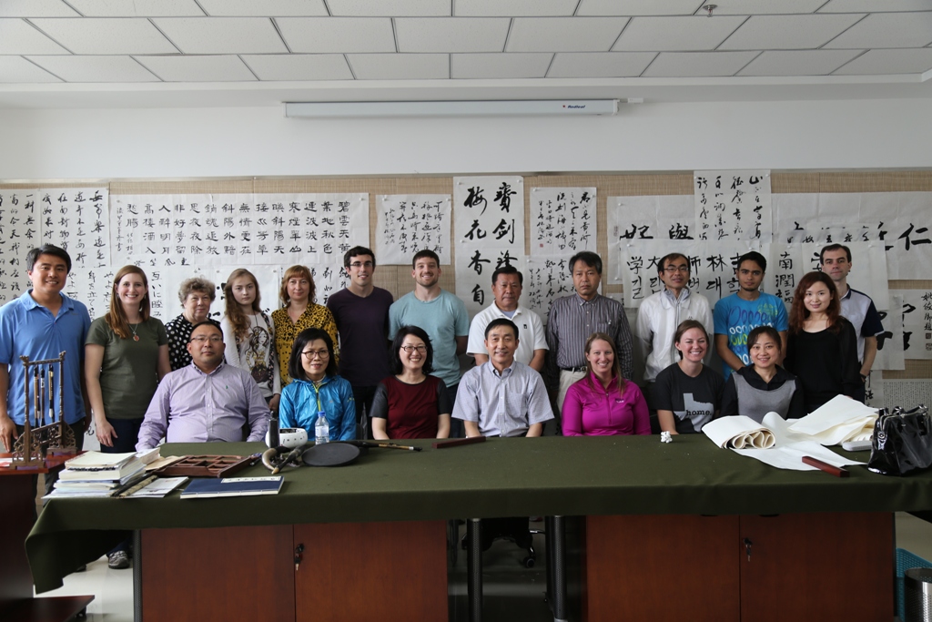 访问团先后参观了书法研究室、动画工作室、纪录片与微电影工作室、新媒体工作室、沙画工作室、音频技术工作室、声音艺术工作室、吉师传媒视频工作室以及“功能材料物理与化学教育部重点实验室”、“环境友好材料制备与应用教育部重点实验室”,并观看了学生精心准备的各类节目。在书法研究室,各位外籍专家对中国书法表现出了极大兴趣,深深为中国传统文化的魅力所折服。参观结束后,外籍专家们对太阳成官网富有特色的学科建设及学生扎实的知识功底给予了高度评价。