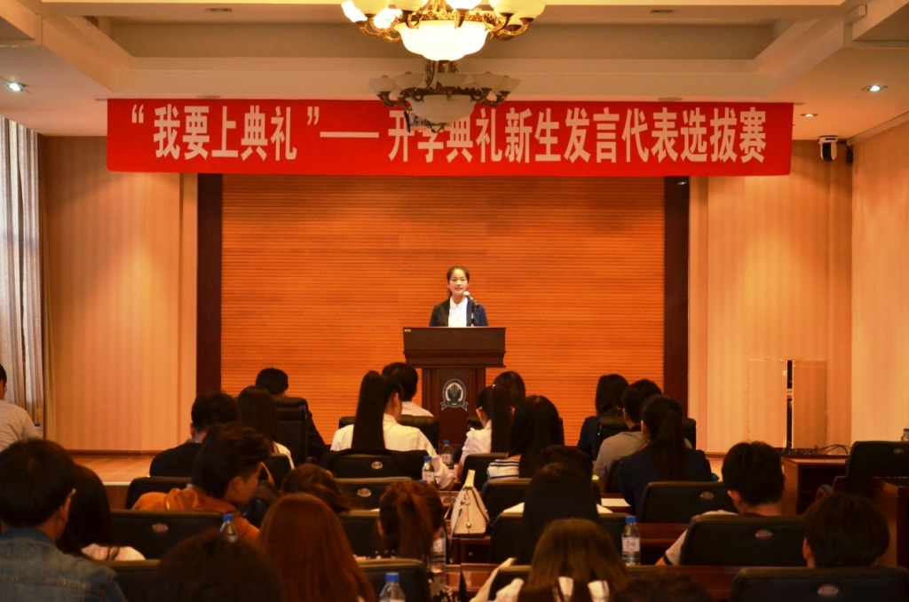 9月7日,由党委学工部主办的“我要上典礼”——开学典礼新生发言代表选拔赛决赛在图书馆一楼会议室举行。经各学院预赛,共有16名2015级新生参加了决赛。