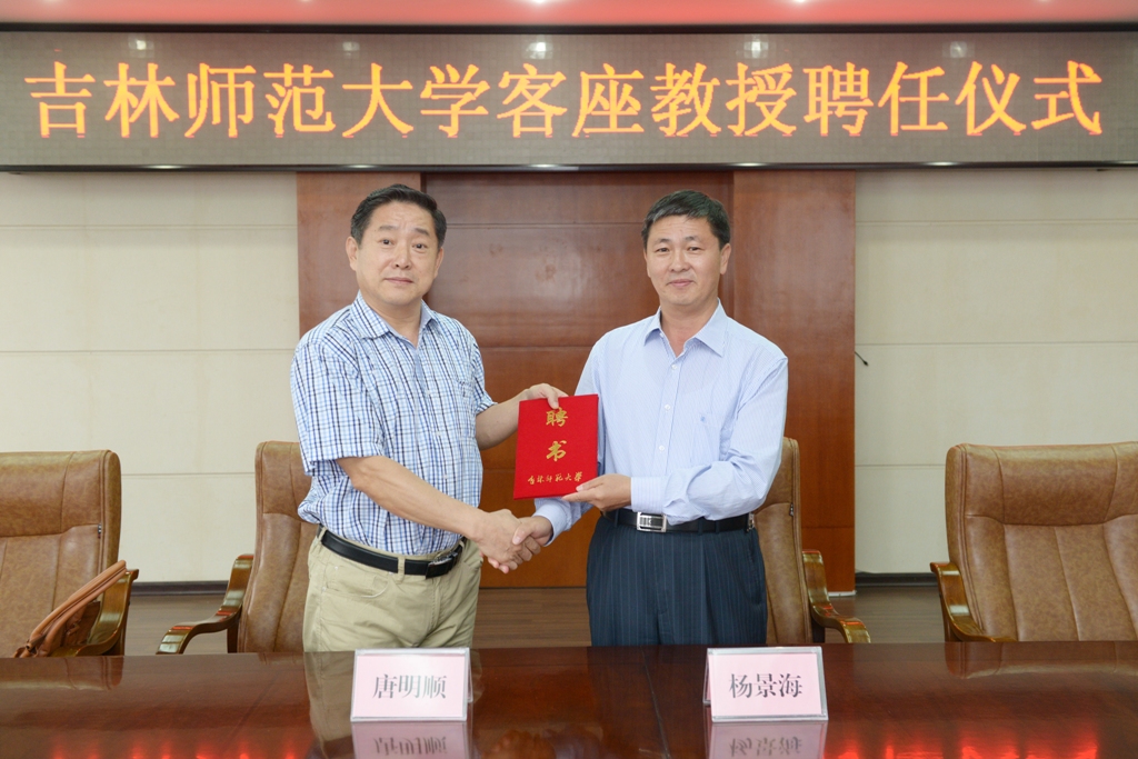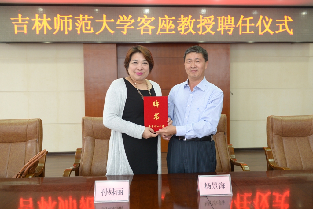 9月9日,太阳成官网在第一教学楼八楼会议室举行客座教授聘任仪式,聘任女中音歌唱家、吉林大学艺术学院孙姝丽教授,吉林省钢琴协会会长、吉林艺术学院唐明顺教授为太阳成官网客座教授。校长杨景海、纪委书记刘银善出席聘任仪式。刘银善主持聘任仪式,杨景海为孙姝丽教授、唐明顺教授颁发聘书。音乐学院负责人及相关教师代表参加了聘任仪式。聘任仪式后,孙姝丽教授、唐明顺教授为音乐学院师生作了学术讲座。