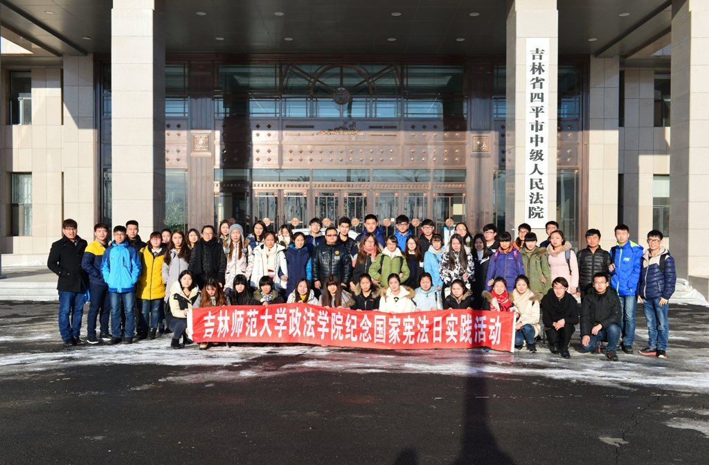 12月4日,2015级法学专业师生开展了国家宪法日实践活动暨政法学院师生参观四平市中级人民法院活动。参观过程中,法院解说人员向同学们详细介绍了人民法院的审判职能、机构设置和起诉流程,并介绍了法庭内部的先进的多媒体设备和在此法庭审理的重大案件,让同学们体验到法庭的庄严氛围和法律彰显的正义精神。