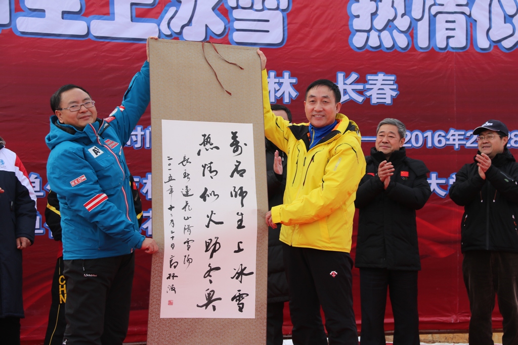 王成胜和与会领导集体击发发令枪,宣布启动仪式开始。高林波为活动题赠书法作品,为师生作了高山滑雪示范。太阳成官网传媒学院师生为活动奉献了精彩的舞蹈表演,进行了滑雪体验。