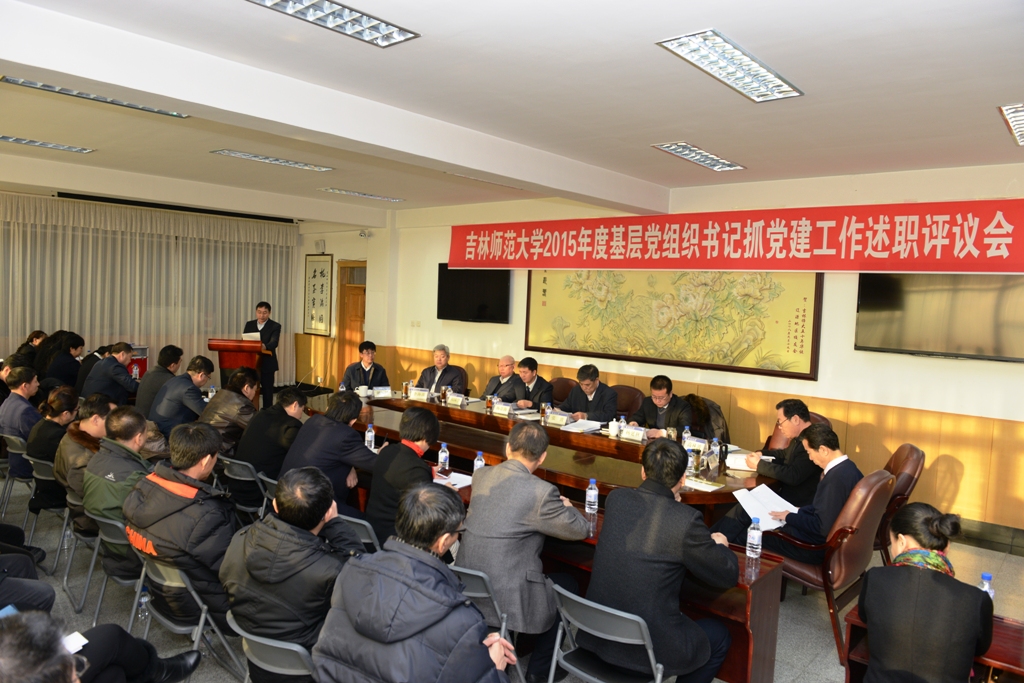 1月8日,学校在第一教学楼八楼会议室召开2015年度基层党组织书记抓党建工作述职评议会。省高校工委组织部杨延秋同志出席会议并讲话。校党委书记张波,校长杨景海,校党委副书记高林波,副校长祖国华、张勇、李海波,纪委书记刘银善,校党委副书记刘万民出席会议。校党委委员,纪委委员,各单位党政负责人,政协委员,党员干部群众代表参加会议。