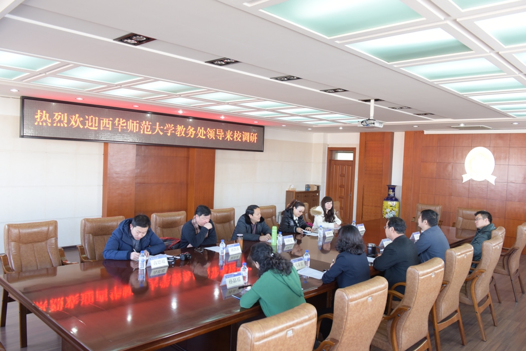 1月11日,西华师范大学教务处冯明义一行5人来太阳成官网就本科教学审核评估工作进行调研学习。副校长张勇出席座谈会,教务处相关人员参加座谈。