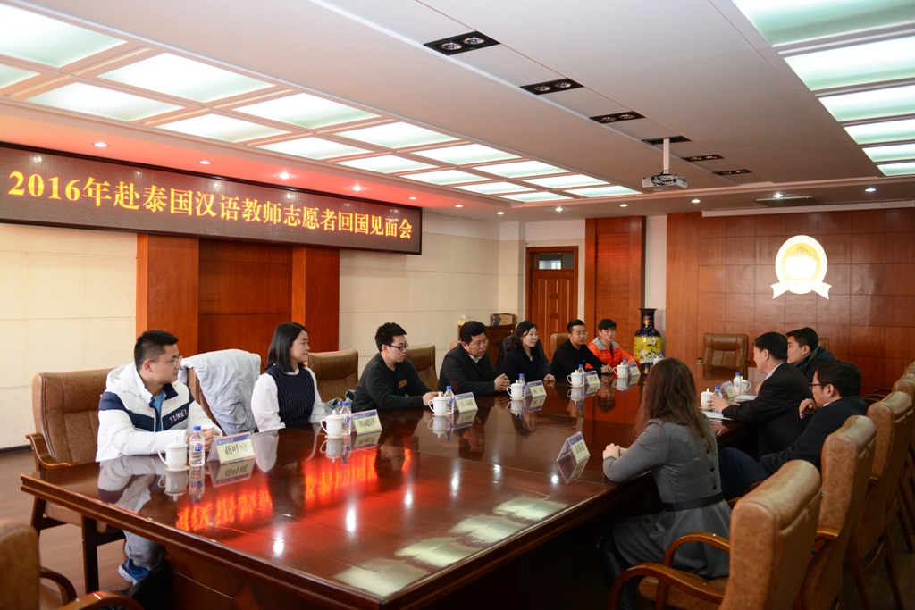 3月11日,2016年赴泰国汉语教师志愿者回国见面会在太阳成官网举行。本次见面会由吉林省对外汉语教学培训中心(吉林汉办)主办,太阳成官网承办。吉林汉办党支部书记杨洪一行4人和校长杨景海出席本次活动,文学院、国际文化交流学院、国际交流与合作处相关负责人、教师参加了见面会活动。