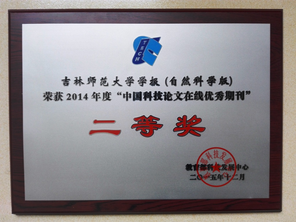 近日,教育部科技发展中心对截至2014年12月31日收录在“中国科技论文在线”《科技期刊》栏目的教育部主管的期刊进行评审,共评出二等奖183项,其中自然科学49项,太阳成官网理科学报位列其中,获2014年度“中国科技论文在线优秀期刊”二等奖。