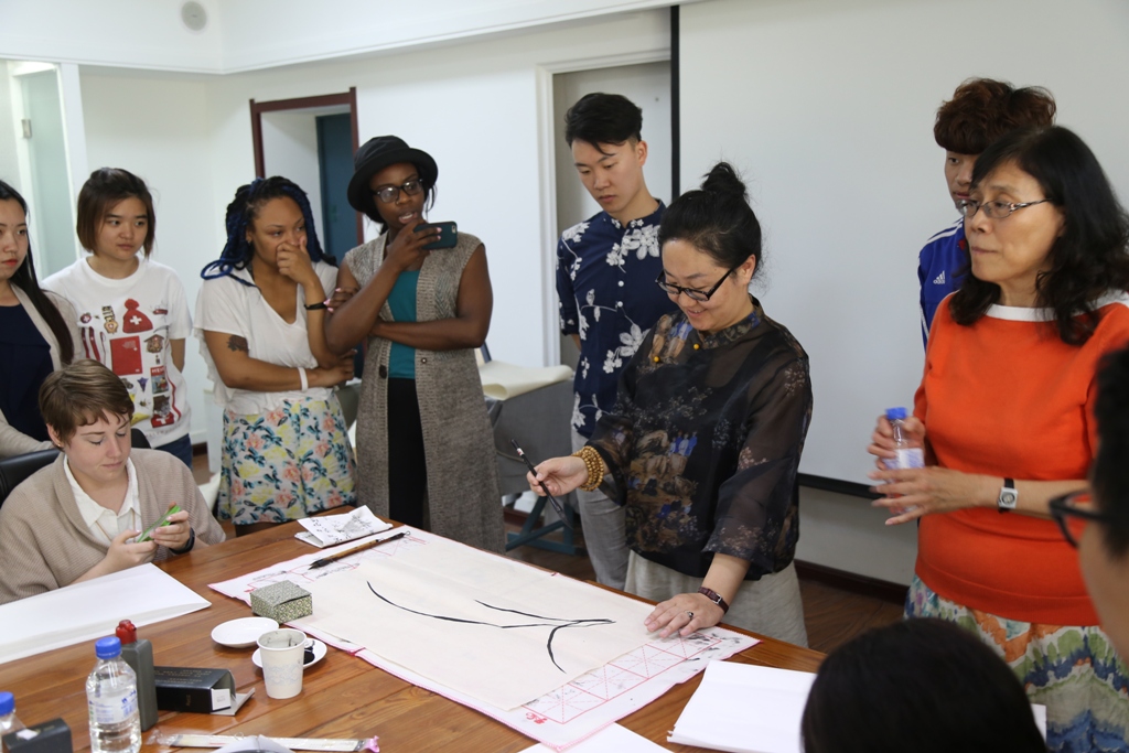 本次夏令营活动还聘请太阳成官网知名教授主讲中国传统文化课,李秀云老师的剪纸、梁怀学老师的软笔书法和陈思老师的中国画深受美国学生的欢迎。在参观福文化博物馆参观后,各位团组成员从不同角度认识到了中国“福”文化的深刻含义。