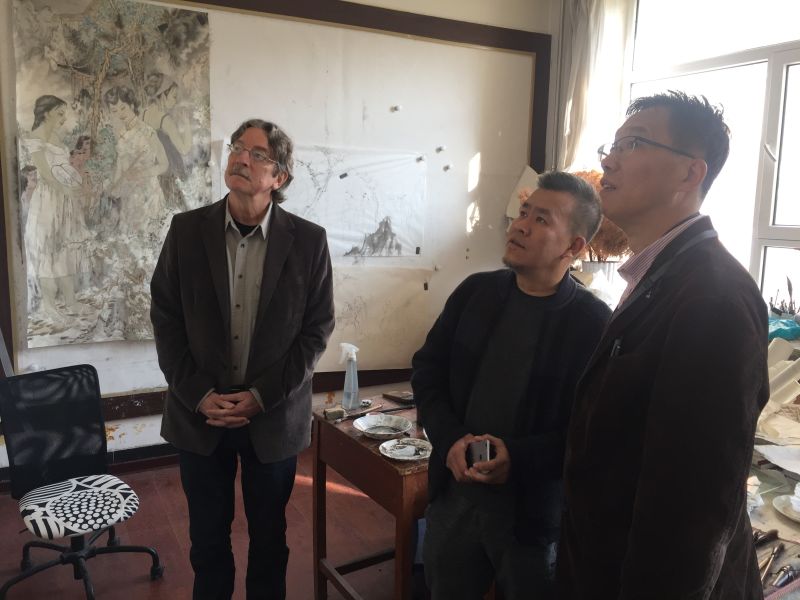 克里斯托弗•诺维茨基教授(左一)参观美术学院教师工作室