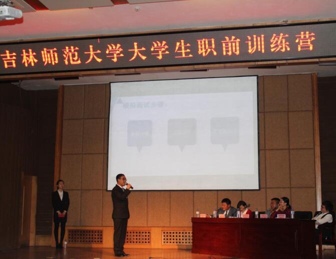 大学生职前训练营为期一天,以就业指导为依托,以提升职场技能为目标,以调节就业压力为手段,以最终实现就业为目的,采取主题报告和实践演练相结合的模式进行。“求职微论坛”设置了面试技巧、简历制作、求职的语言艺术等不同单元,邀请尹宾、马世瑞、高玉梅等就业指导专家授课指导。“求职面对面”版块,澳门太阳成集团附属中学附属小学、精锐教育集团、博彦科技股份有限公司、四平中友电子商务产业园有限公司、白象食品股份有限公司吉林分公司五家单位的现场招聘,不仅让学生了解了招聘流程,知晓了面试官选聘毕业生的标准,而且面试的实战演练让毕业生更加真实地感受了招聘的气氛,面试官及嘉宾的点评,让学生更加明确了自己的努力方向。