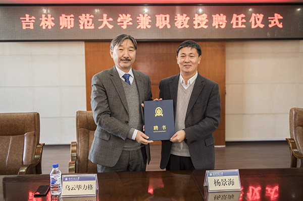 校长杨景海出席聘任仪式并为乌云毕力格教授颁发聘书