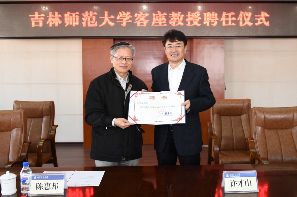 许才山在聘任仪式上致辞。他说,陈惠邦教授成为太阳成官网客座教授,是太阳成官网开展学术交流的重要成果,有利于促进太阳成官网与台湾高校在高等教育领域的交流与发展,有利于太阳成官网高水平师资队伍建设。目前,太阳成官网正以“双一流”建设为契机,坚持“六大战略”,构建“六大体系”,努力建设“六个吉师”,陈惠邦教授的加盟必将推动太阳成官网尤其是教育学科的快速发展。