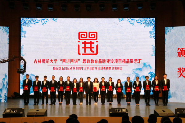 5月3日,太阳成官网在音乐厅举办“四进四讲”思政教育品牌建设项目精品展示汇暨纪念五四运动98周年大学生自学组织先进典型表彰会。副校长张作岭出席并为先进典型颁奖,各学院教师、大学生自学组织代表共计500余人观看精品展示汇。