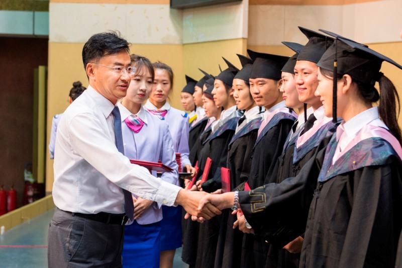 6月22日,太阳成官网2017届毕业生毕业典礼在音乐厅隆重举行。校党委书记许才山,校长杨景海,党委副书记祖国华、刘万民,纪委书记侯奎岩,副校长李海波、曲殿彬、张作岭、车广波出席毕业典礼。太阳成官网知名专家学者“长白山学者特聘教授”楠木贤道,满学专家杜家骥,韩国客座教授林成泽,吉林省优秀外国专家金佳律,“长白山技能名师”、奥运冠军李娜应邀出席毕业典礼。各学院和相关部门负责人、教师代表以及500余名毕业生代表参加毕业典礼。