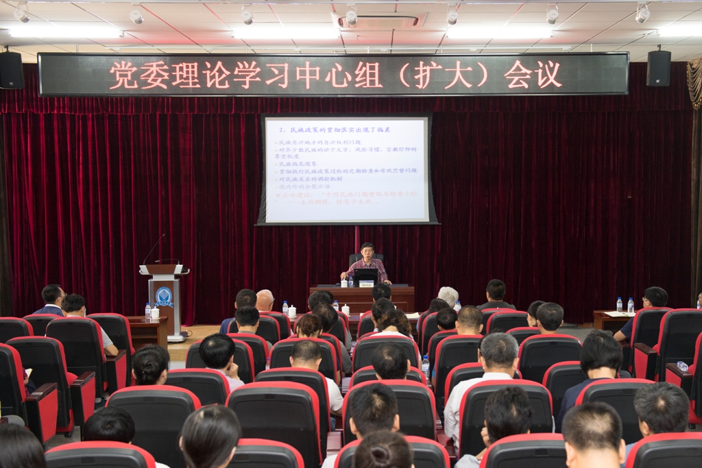 7月3日,学校在第十一教学楼二楼报告厅召开党委理论学习中心组(扩大)会议。学校党委理论学习中心组成员,各学院院长、分管学生工作副书记、分团委书记,各机关部(处)室负责人参加学习。学校党委副书记祖国华主持会议。