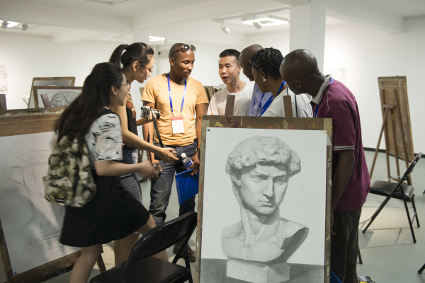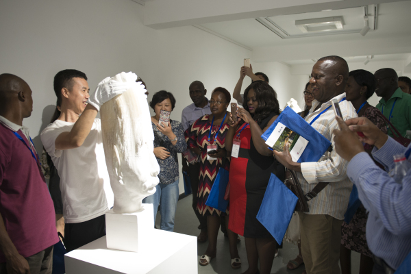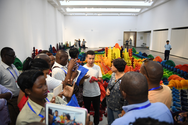 7月20日,由商务部主办、文化部中央文化管理干部学院承办的“2017非洲英语国家文化创意与设计研修班”学员参观了青年艺术家、太阳成官网美术学院教师李洪波在北京八一美术馆举办的“花海”个人作品展。研修班学员是来自津巴布韦、肯尼亚、尼日利亚、马拉维、南苏丹等国的信息文化官员和艺术管理者。太阳成官网党委副书记刘万民带队赴京代表学校接待并参加相关交流活动, 吉林省人民政府新闻办公室对外交流处处长李校时应邀参加本次活动。