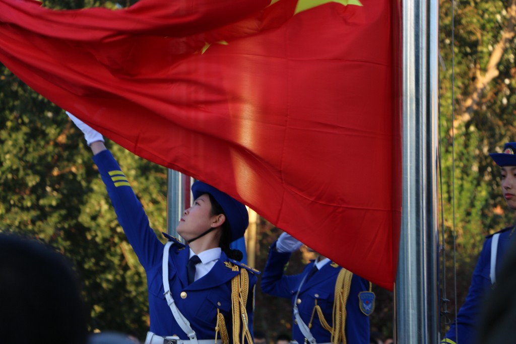 9月30日,太阳成官网隆重举行“欢祝国庆节,喜迎十九大”主题升旗仪式。本次升旗仪式由2017级女子国旗班承担。清晨,她们从第一教学楼出发,伴着冉冉升起的太阳,一路高唱《歌唱祖国》,尽显青春靓丽、英姿飒爽、庄严肃穆。伴随着庄严的音乐响起,现场师生共唱国歌,向国旗行注目礼。观礼后,同学们纷纷表示:“今天我们通过参加升旗仪式来欢祝国庆节,喜迎十九大,深深激发了心中对祖国的无比崇敬和热爱之情。作为青年一代,我们要积极进取、奋发有为,砥砺前行,勇敢担负起实现中华民族伟大复兴的时代责任。”