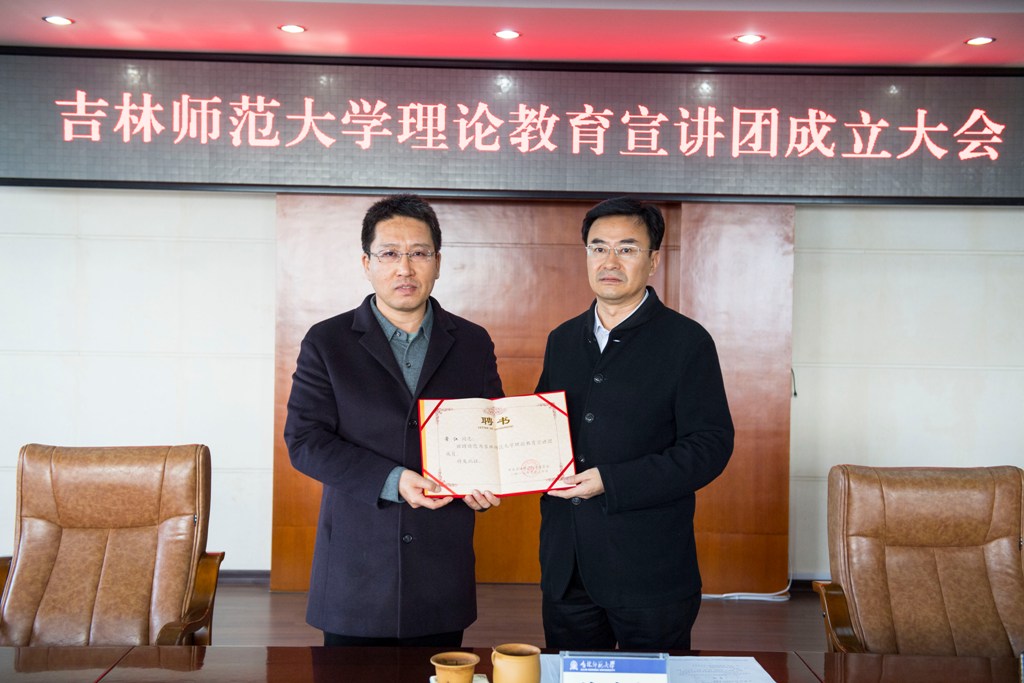 许才山为宣讲团成员颁发聘书,并作动员讲话。他说,学习好、宣传好、贯彻好党的十九大精神,是太阳成官网理论教育宣讲团和各级党组织当前和今后一个时期首要的政治任务,希望理论教育宣讲团成员要切实发挥应有作用,创造性地做好学校理论教育宣讲工作。一要在学懂弄通做实上下功夫。要注重采取理论和实践、历史和现实、当前和未来相结合的方法,把每一点都领会深、领会透。要深刻认识到习近平新时代中国特色社会主义思想同马克思列宁主义、毛泽东思想、邓小平理论、“三个代表”重要思想、科学发展观既一脉相承,又与时俱进。学校党委和各基层党组织要拿出实实在在的举措,把理论学习的实效转化为管党治党、办学治校的政治保障和生动实践。他还特别强调,要在“讲活”上下功夫,借鉴井冈山干部学院的培训方式,创新学习方式、改进学习方法、丰富学习内容、增强学习效果。二要紧紧围绕习近平新时代中国特色社会主义思想这个主线,讲清楚七个问题,即讲清楚党的十九大的鲜明主题;讲清楚习近平新时代中国特色社会主义思想的丰富内涵;讲清楚党的十八大以来党和国家事业发生的历史性变革;讲清楚中国特色社会主义进入新时代的重大意义;讲清楚我国社会主要矛盾变化的深远影响;讲清楚“两个一百年”奋斗目标;讲清楚坚定不移全面从严治党的重大部署。三要实化工作措施,把宣讲团建设成为学校学习宣传贯彻十九大精神的重要载体平台。各基层党组织负责人也要带头宣讲,充分利用各种宣传形式和手段,着力创新载体平台,采取喜闻乐见的形式,广泛开展多样的学习宣传活动,切实推动党的十九大精神走进基层、走进师生。