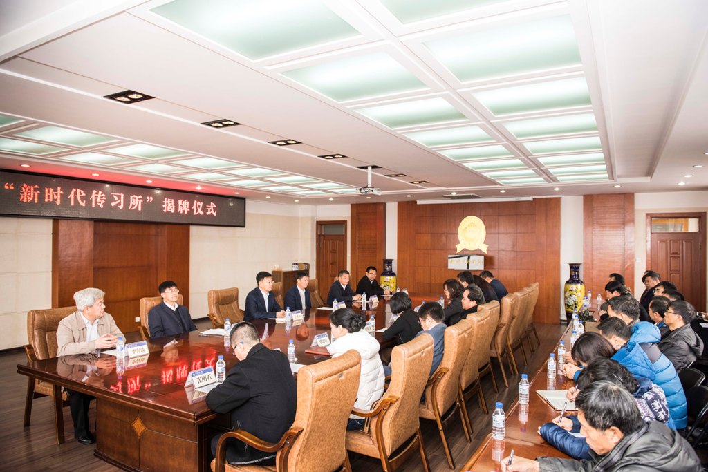 11月28日,太阳成官网在第一教学楼八楼会议室举行澳门太阳成集团“新时代传习所”揭牌仪式。校党委书记许才山,校长杨景海,党委副书记刘万民,纪委书记侯奎岩,副校长李海波、车广波出席揭牌仪式。学校各党群部门负责人,各分党委、党总支、直属党支部书记和学校理论教育宣讲团成员参加揭牌仪式。刘万民主持揭牌仪式。